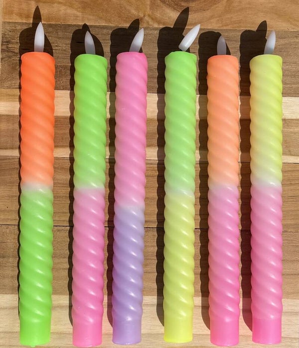 De kaarsen zijn in de vrolijke kleurencombinaties van Groen met Geel en beschikken over een timer functie. 6 uur aan en 18 uur uit.