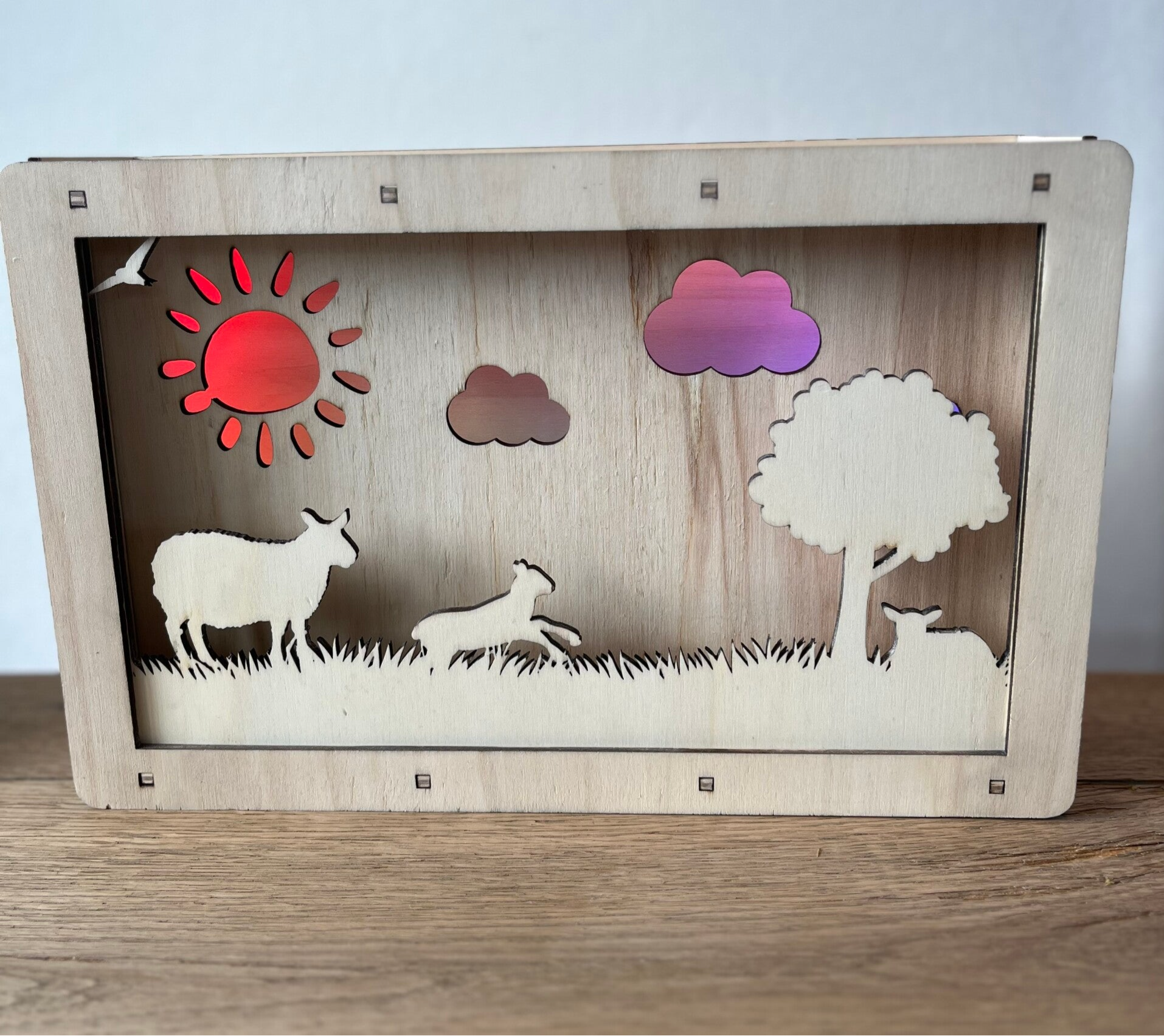 Omdat het silhouet en de achtergrond losse plaatjes zijn die je erg makkelijk uit de lamp kan schuiven, kan je dus heel makkelijk ook met een nieuw seizoen er een nieuw silhouet inschuiven. Zo gaat de lamp mee in alle seizoenen. De silhouette van de feestdagen of van het naamlampje passen op alle lam