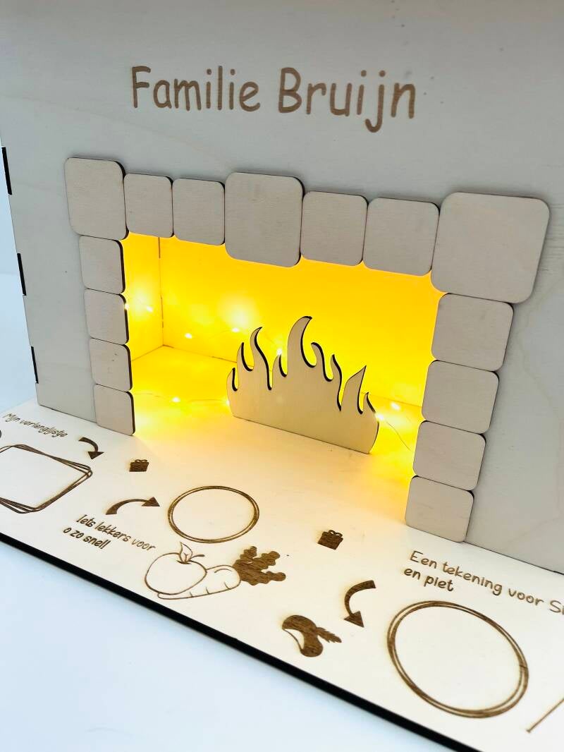 Een mooie en stijvolle open haard die in elk huis een knus gevoel brengt tijdens de feestdagen. Voor sinterklaas kan je de schoenzet kant gebruiken, en voor kerst draai je de plank gewoon om!